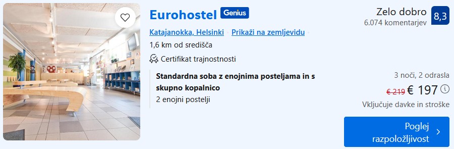 Eurohostel – 3 noči – 99€ na osebo (nočitev) ali 128€ (vključen zajtrk) – Genius popust