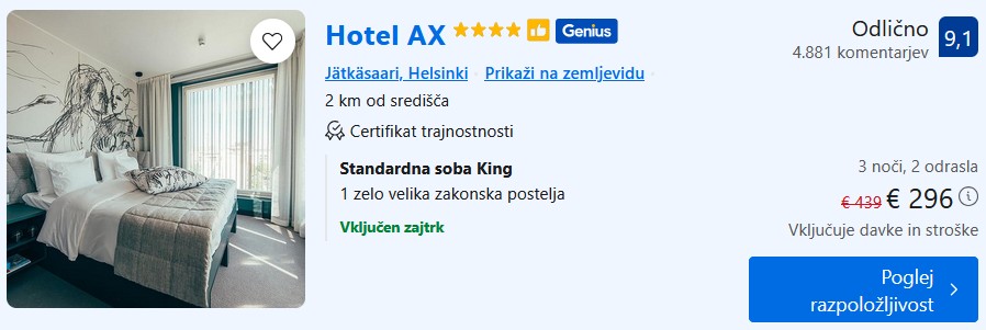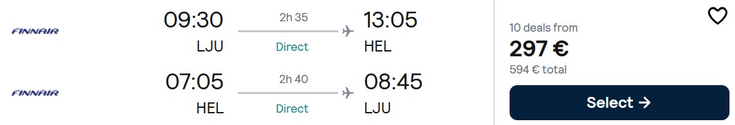 Ljubljana – Helsinki: 02.07.-06.07.2026 – 297€ (vključena ročna prtljaga)