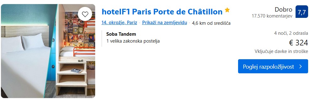 1* hotelF1 Paris Porte de Châtillon – 4 noči – 162€ na osebo (nočitev) ali 202€ (vključen zajtrk)