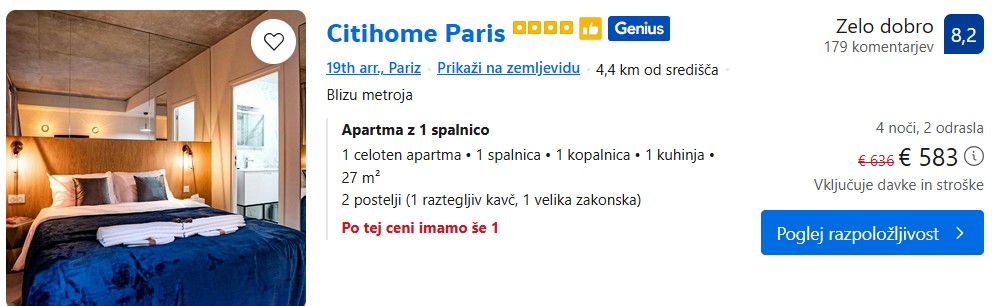 4* Citihome Paris – 4 noči – 292€ na osebo – Genius popust