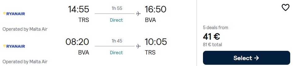 Trieste – Paris: 09.06.-13.06.2026 – 41€ (mala ročna prtljaga)
