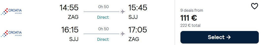Zagreb – Sarajevo: 28.04.-01.05.2026 – 111€ (vključena ročna prtljaga)