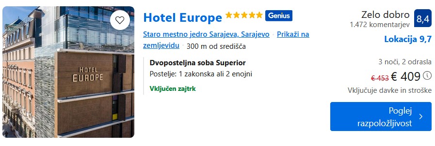 4* Hotel Europe – 3 noči – 205€ na osebo (vključen zajtrk) – Genius popust