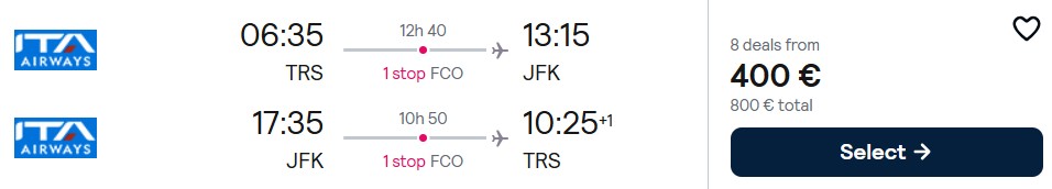 Trieste – New York: 05.06.-13.06.2026 – 400€ (vključena ročna prtljaga)