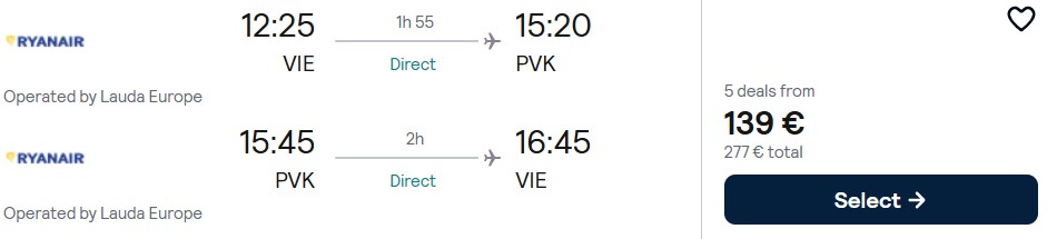Vienna – Preveza: 17.06.-24.06.2026 – 139€ (mala ročna prtljaga)