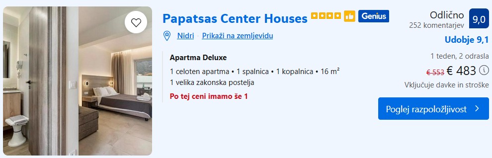 4* Papatsas Center Houses – 7 noči – 242€ na osebo (nočitev) ali 333€ (z vključenim zajtrkom) – Genius popust