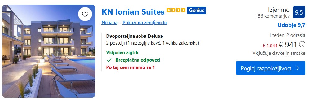 4* KN Ionian Suites – 7 noči – 471€ na osebo (vključen zajtrk) – Genius popust