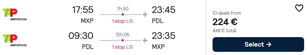 Milan Malpensa – Ponta Delgada: 24.10.-31.10.2026 – 224€ (vključena ročna prtljaga)