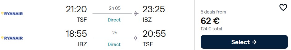 Venice Treviso – Ibiza: 08.05.-15.05.2026 – 62€ (mala ročna prtljaga)