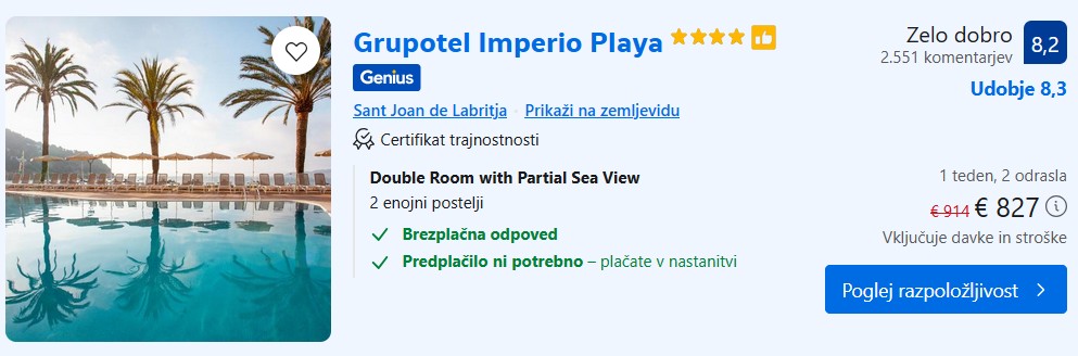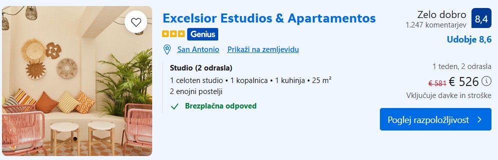 IBIZA 1 TEDEN OD 286€ (letalo+namestitev)
