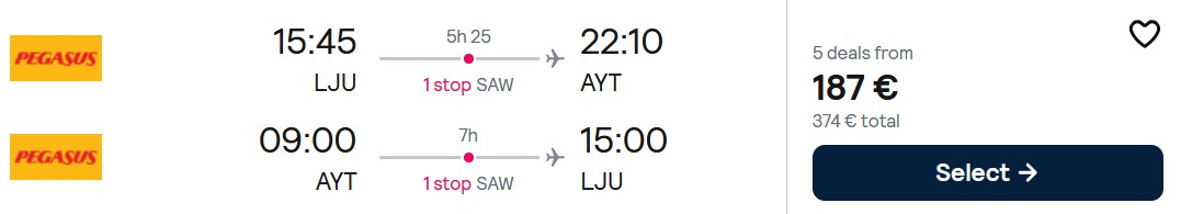 Ljubljana – Antalya: 08.06.-15.06.2026 – 178€ (mala ročna prtljaga)