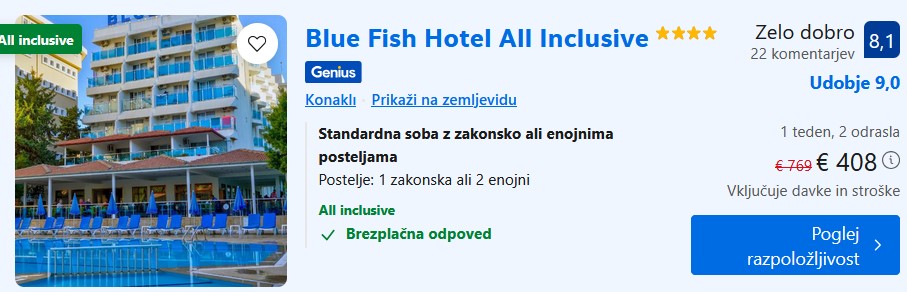 4* Blue Fish Hotel All Inclusive – 7 noči – 204€ na osebo (vključen all-inclusive) – Genius popust