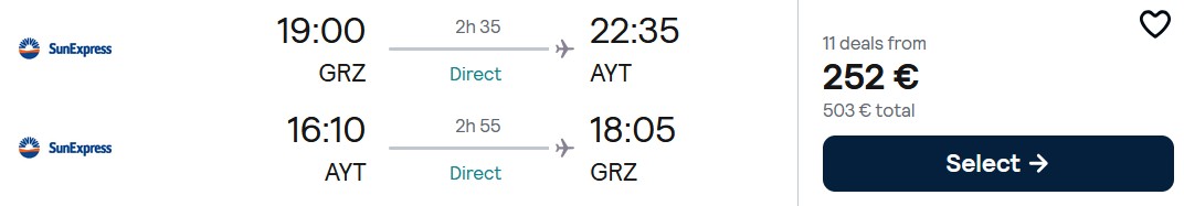 Graz – Antalya: 11.06.-18.06.2026 – 252€ (velika prtljaga)