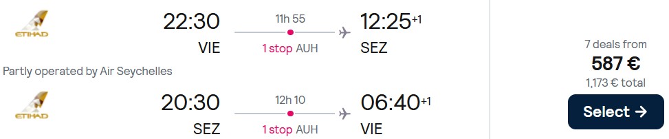Vienna – Mahe: 20.09.-01.10.2026 – 587€ (ročna prtljaga, doplačilo za veliko prtljago 36€)