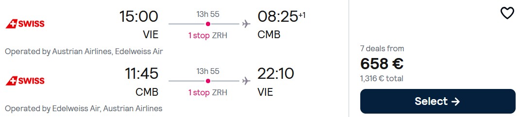 Vienna – Colombo: 08.05.-21.05.2026 – 658€ (vključena ročna prtljaga)