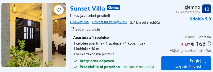Sunset Villa – 12 noči – 84€ na osebo – Genius popust