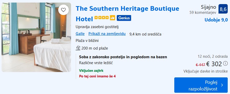 4* The Southern Heritage Boutique Hotel – 12 noči – 151€ na osebo (vključen zajtrk) ali 295€ (polpenzion) – Genius popust