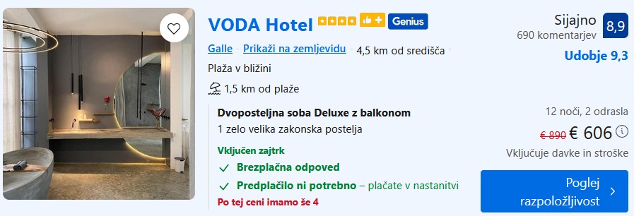4* VODA Hotel – 13 noči – 303€ (vključen zajtrk) – Genius popust