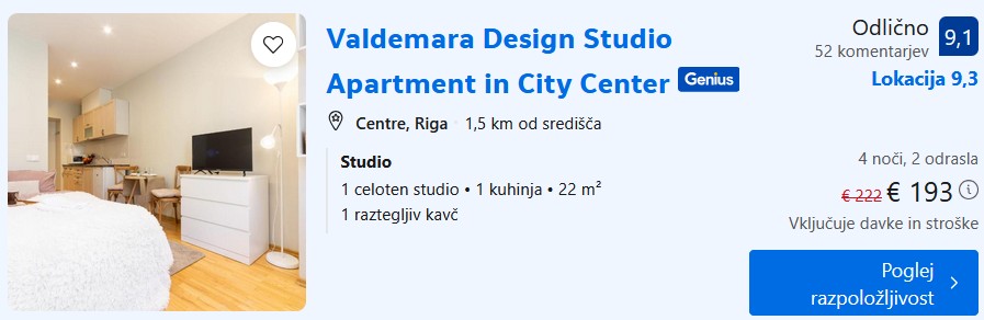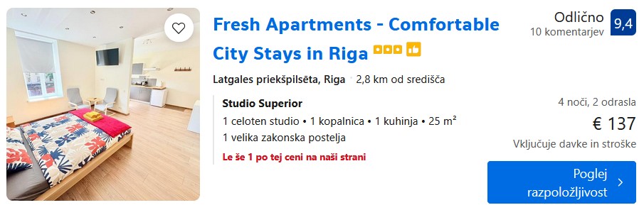 3* Fresh Apartments – Comfortable City Stays in Riga – 4 noči – 69€ na osebo – Genius popust