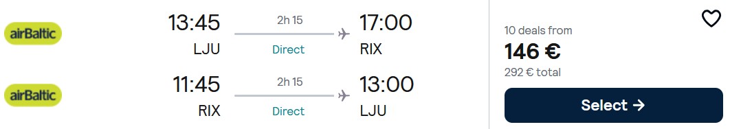 Ljubljana – Riga: 16.04.-19.04.2026 – 146€ (ročna prtljaga)