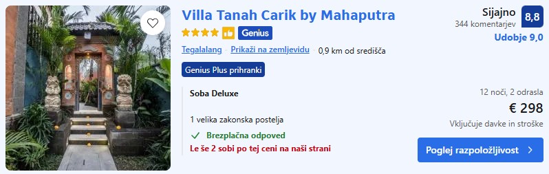 4* Villa Tanah Carik by Mahaputra – 12 noči – 149€ na osebo (vključen zajtrk) – Genius popust