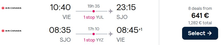 Vienna – San Jose: 13.01.-26.01.2026 – 641€ (ročna prtljaga)